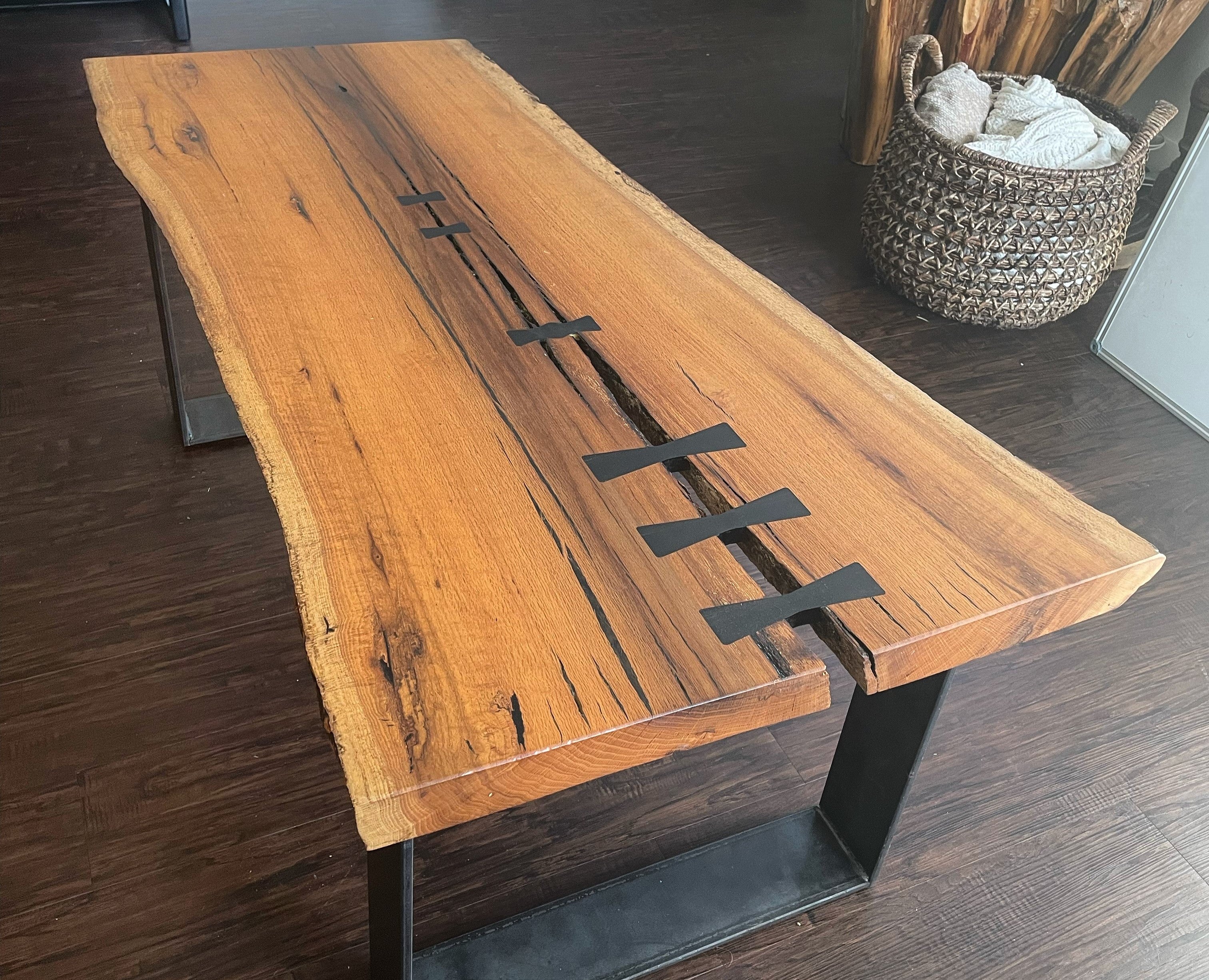 Custom White Oak Coffe Table with Ebony Bowtie Inlay